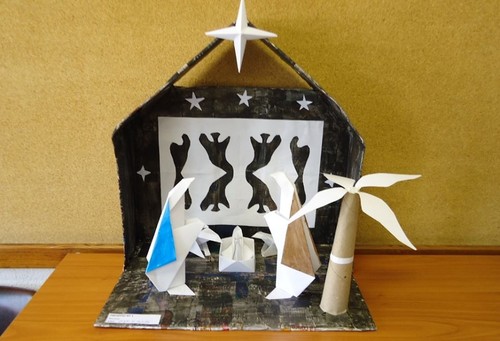 Presépio feito com papelão/embalagens na cobertura e figuras construidas totalmente em dobragens com papel. Reutilização de desperdicios. Presépio interessante e fácil de fazer. É o 3º presépio com aproveitamento/reutilização de materiais.O 1º foi feito de papel. o 2º com cápsulas de café. O 3º que é este novamente em papel. Com um pouco de imaginação e vontade poderemos dar brilho ao nosso Natal.Bom Natal a todos..